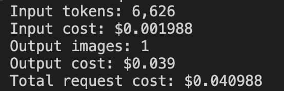 Google advertises $0.039 per output image, but that’s only part of the story. Each request also includes input tokens. Here’s the breakdown: